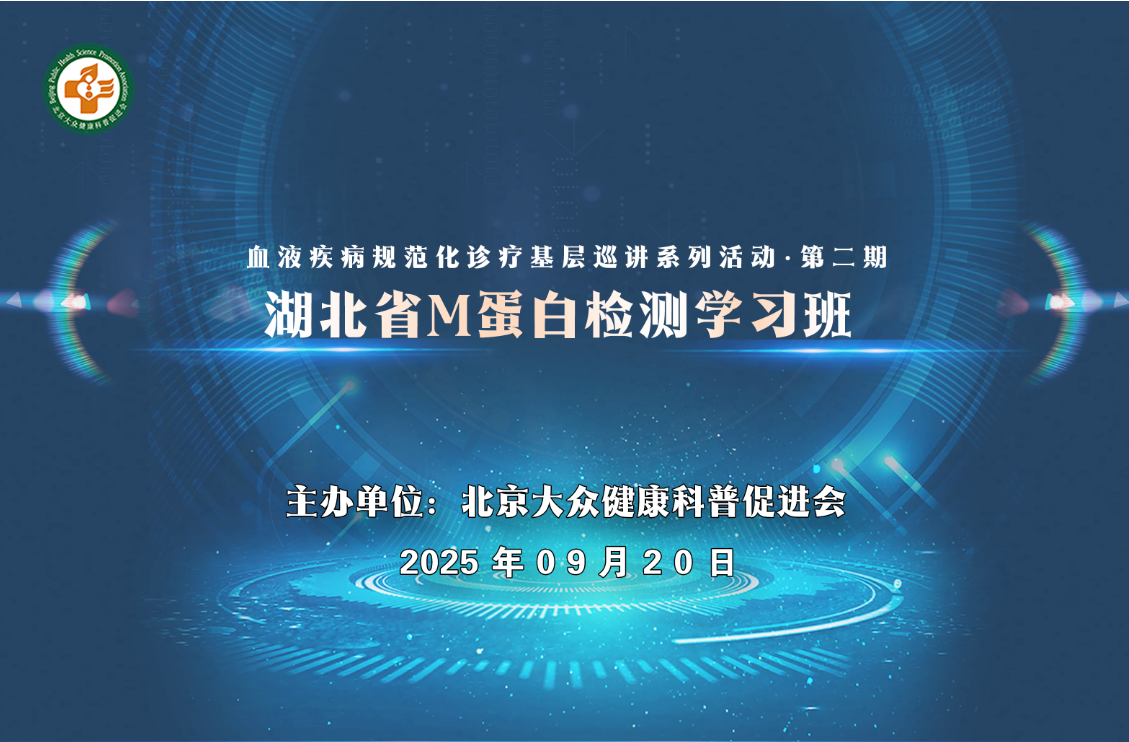 为促进湖北省临床蛋白电泳实验室检测及应用的发展,规范和提高具有临床意义的单克隆免疫球蛋白病、血红蛋白病的诊疗水平,由北京大众健康科普促进会牵头,发起“血液疾病规范化诊疗基层巡讲系列活动—第二期湖北省M蛋白检测学习班”。
